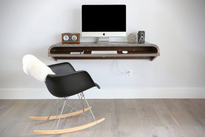 Basit gibi görünse de bu duvara monte edilmiş bilgisayar masası oldukça işe yarar. Üstelik yerleri temizlerken bu masaların avantajını yaşayabilirsiniz.