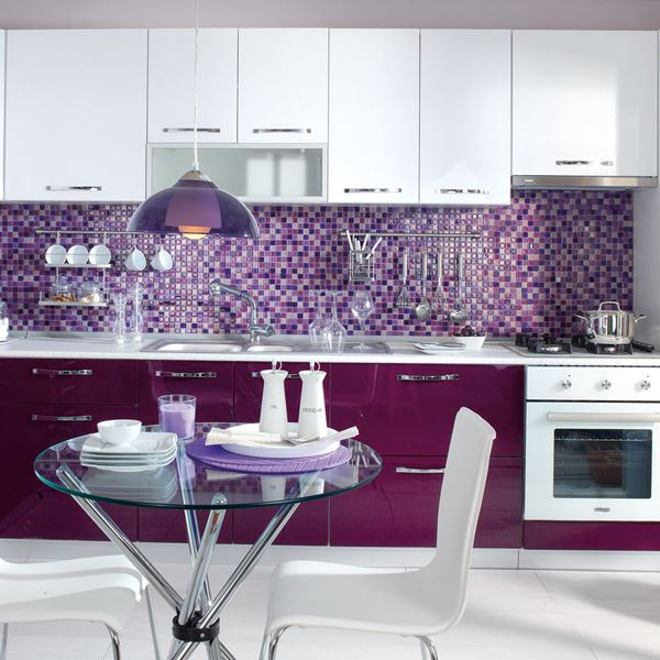 Mürdüm rengi mutfak dolap modelleri yanında rengin tonlarında kullanılan aksesuarlar mutfak dekorasyonunu tamamlayabilmektedir.